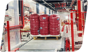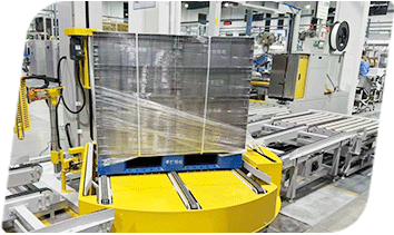基于現階段市場需求新開發的一款配套流水線的全自動纏繞包裝機,自動包裝整線方案:自動封箱機+自動纏繞機+碼垛機+AGV移動車+立體庫。